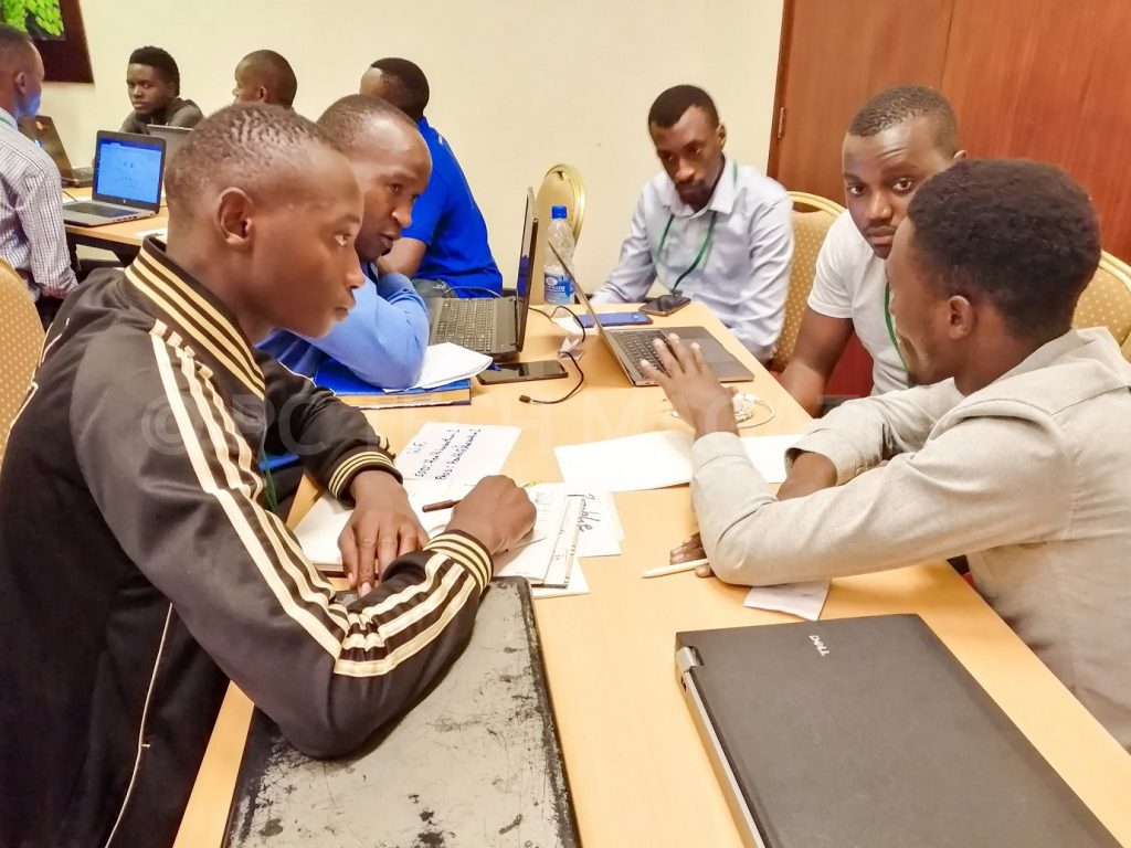 Representatives from Andela Uganda briefing the 35 participants during the IDI-Andela Health Hackathon at the Health Innovation Conference on Tuesday 19th, March 2019 | Photo by PC Tech Magazine/Olupot Nathan Ernest. Representatives from Andela Uganda briefing the 35 participants during the IDI-Andela Health Hackathon at the Health Innovation Conference on Tuesday 19th, March 2019 | Photo by PC Tech Magazine/Olupot Nathan Ernest.