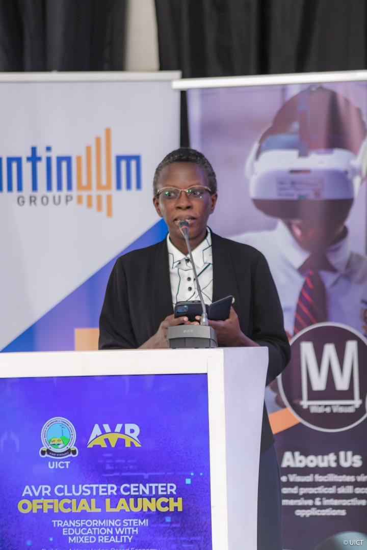 Eng. Christine Mugimba, Director of ICT and Research at UCC speaking at the launch of the AVR Cluster Center at UICT. Courtesy Photo/UICT