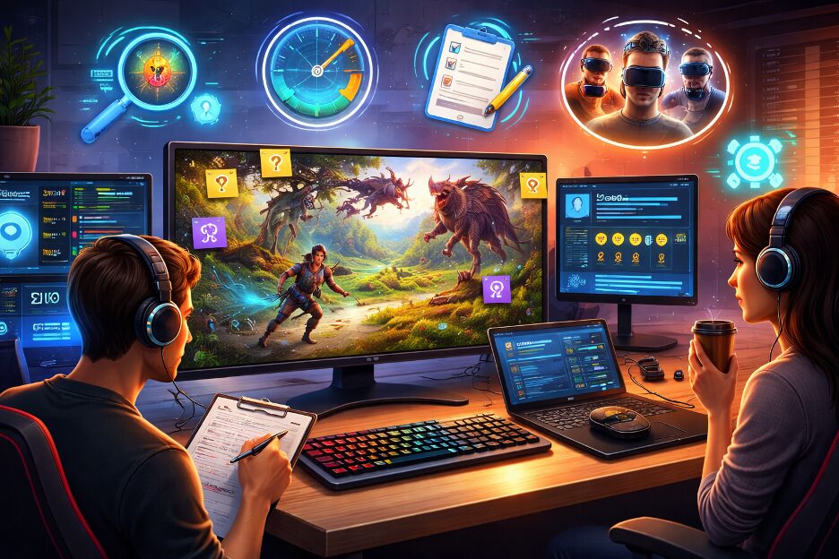 - Visual and Sound Quality: Look at all screens on different displays. Colors should stay clear and text easy to read. Sounds and music must match the action and not overlap strangely. Test with headphones and speakers to catch volume or timing issues.