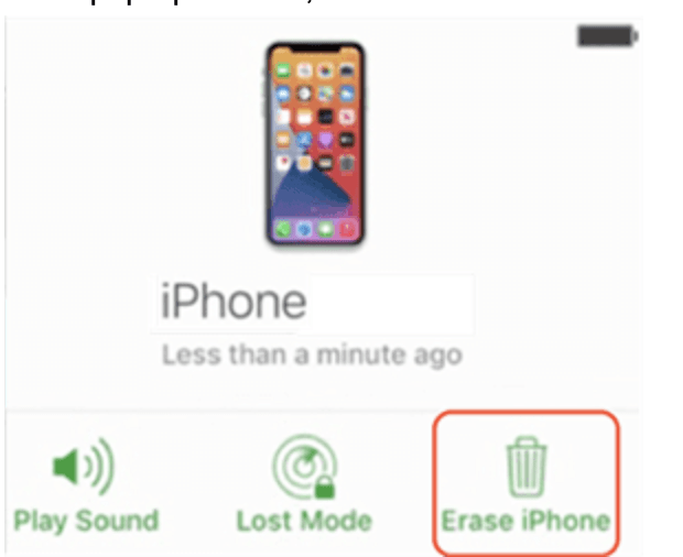 4. In the pop-up window, click “Erase iPhone.”