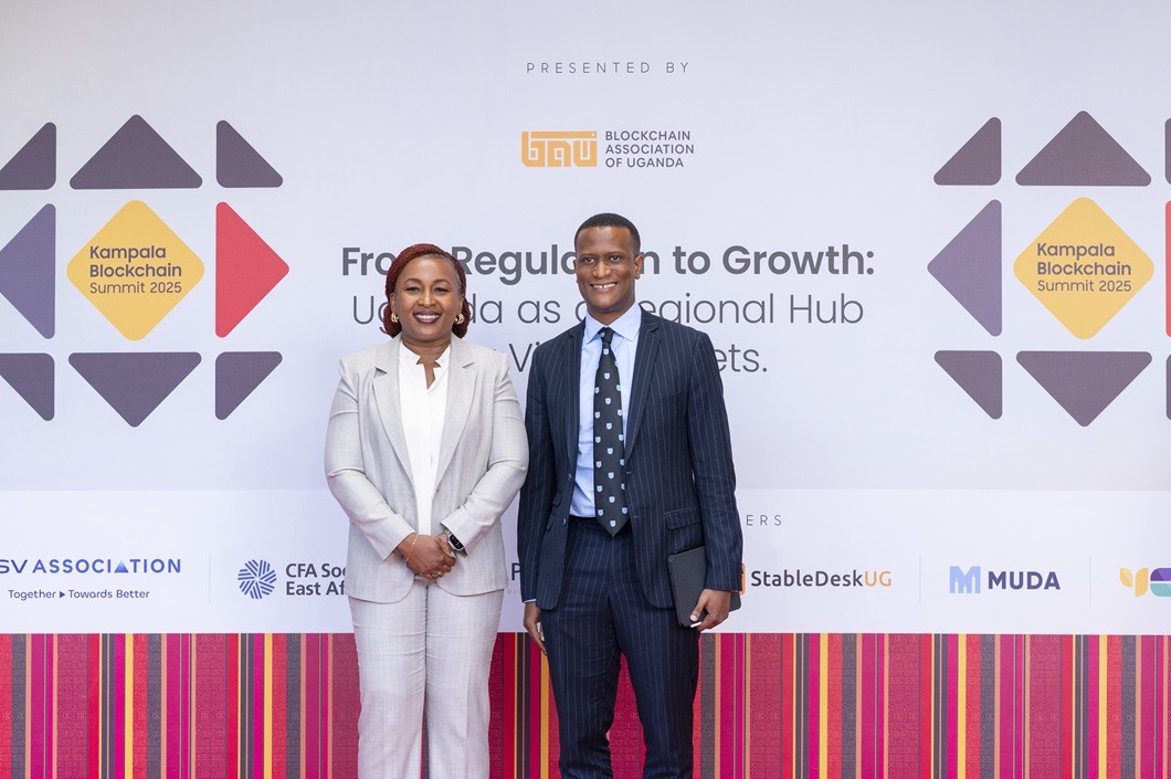 Reginald Tumusiime (L) and Sylvia Mulinge (R) at the 2025 Kampala Blockchain Summit at Four Points by Sheraton. COURTESY PHOTO